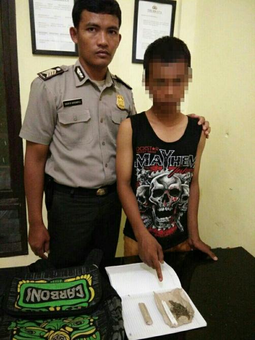 SIMPANGKANAN - DD (14) warga Simpang Polsus kepenghuluan Bukit Damar, kecamatan Simpang Kanan harus berurusan dengan pihak kepolisian karena kedapatan memiliki narkotika jenis daun ganja kering.Berdas