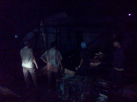 PEKANBARU-Kebakaran hebat hanguskan dua unit kios, Kamis (20/8/2015) malam tadi, sekitar pukul 22.00 WIB, di Dusun II, Pulau Desa Rumbio Kecamatan Kampar, Riau, tepatnya di tepi Jalanraya Pekanbaru- B