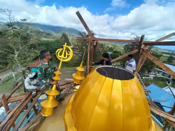 Selasa 26 Oktober 2021 - Sebanyak 10 anggota Satgas Pamrahwan Yonif RK 751/VJS Pos Kotis Batalyon dipimpin oleh Letda Chk Toma Hidayat bersama masyarakat Distrik Walesi melaksanakan pemasangan Kubah Masjid Al-Aqso di Distrik Walesi, Kabupaten Jayawijaya,