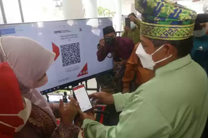 Bupati Siak Drs H Alfedri MSI resmi meLaunching pembayaran pajak bumi bangunan-P2 dan tiket untuk memasuki kawasan Istana Siak melalui QRIS Bank Riau Kepri, bertempat dipelataran lantai II kantor Bupati Siak, Selasa(12/10/21)