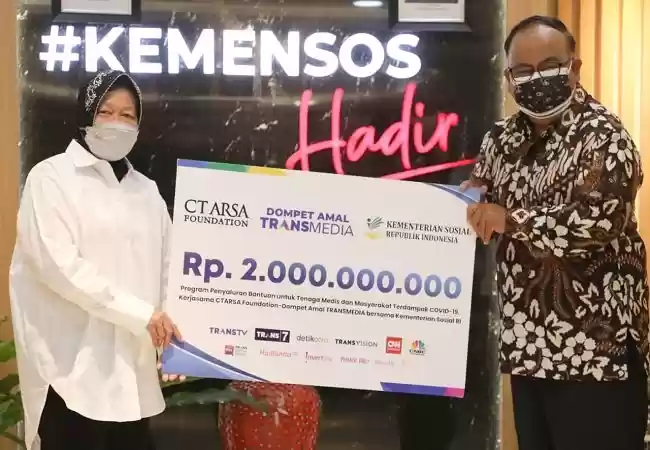 Kementerian Sosial (Kemensos) menerima bantuan sebesar Rp2 miliar dari CT ARSA Foundation dan Dompet Amal Transmedia.