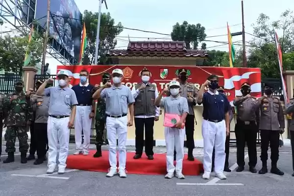 ROKAN HILIR- Bupati Rokan Hilir (Rohil) Afrizal Sintong bersama Forum Komunikasi Pimpinan Daerah (Forkopimda) di rumah dinas Bupati di Bagansiapiapi, mengikuti acara pemberian remisi umum serentak se Indonesia melalui virtual zoom yang diselenggarakan Men