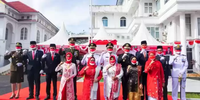 BAGANSIAPIAPI- Pelaksanaan upacara Hari Ulang Tahun (HUT) Republik Indonesia (RI) ke 76 di Kabupaten Rokan Hilir (Rohil) berlangsung khidmat dengan penerpaan protokol kesehatan yang ketat, Selasa (17/8/2021).