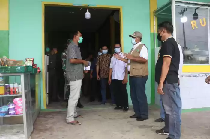 Bupati Siak Alfedri bersama Kapolres Siak AKBP Gunar Rahardiyanto melaksanakan kegiatan pembagian masker dan sosialisasi Pemberlakuan Pembatasan Kegiatan Masyarat (PPKM) level 4 untuk Kabupaten Siak