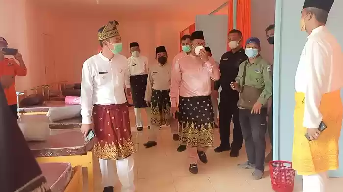 Kapolres Rokan Hilir AKBP Nurhadi Ismanto SH SIK bersama Bupati Rokan Hilir Afrizal Sintong kunjungi ruang isolasi mandiri penanggulangan Covid -19 dieks Kantor Disnaker Taman Budaya Batu 6 pada Senin (9/8/2021).