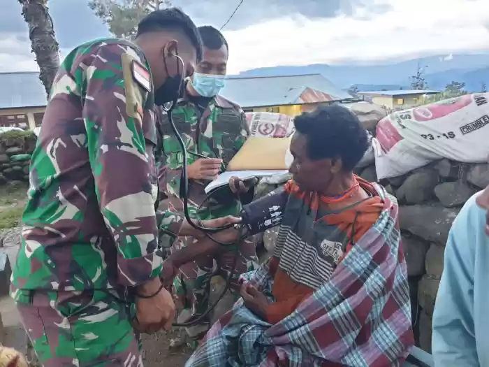 Satgas TNI Membantu Mengobati Masyarakat Yang Sedang Sakit di Pegunungan Tengah Papua