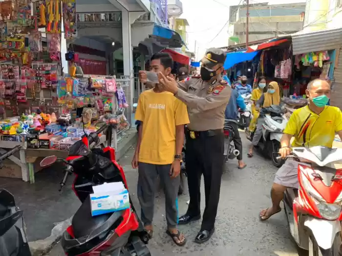 Polsek Panipahan Bagikan Masker Sekaligus Sosialisasikan Prokes
