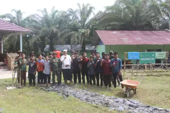 Prajurit TNI Yonif 645 Karya Bakti di Ponpes Quran Hadist Al-Hikam Sambas