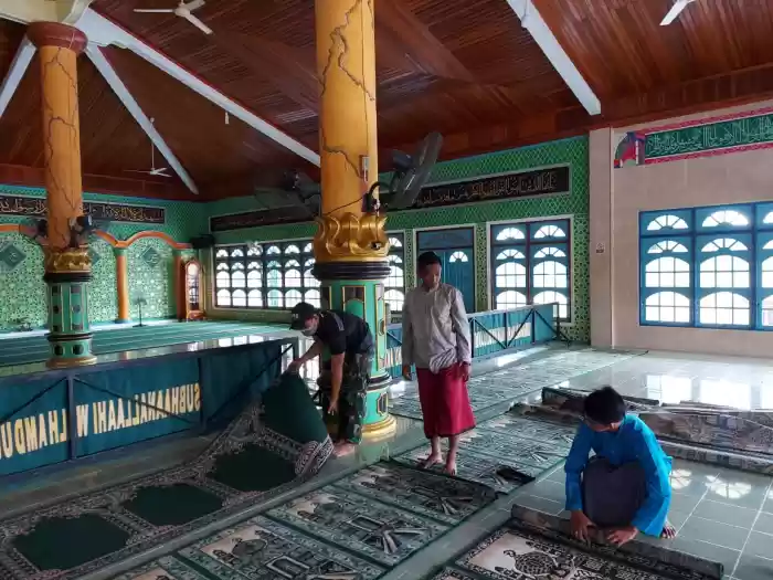 Wujudkan Kenyamanan Ibadah di Bulan Suci Ramadhan, Personel Satgas Yonif 642 Bersama Warga Bersihkan Masjid