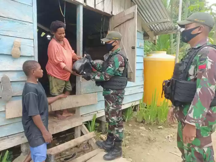 TNI Berbagi Sembako Kepada Masyarakat Perbatasan Di Papua