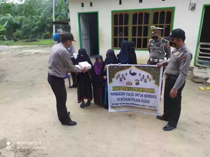 Sebagai wujud kepedulian dan rasa ingin berbagi dengan sesama di bulan suci Ramadhan 1442 H, untuk itu jajaran Polsek Pujud melaksanakan kegiatan bhakti sosial dengan membagikan nasi kotak kepada warga masyarakat.