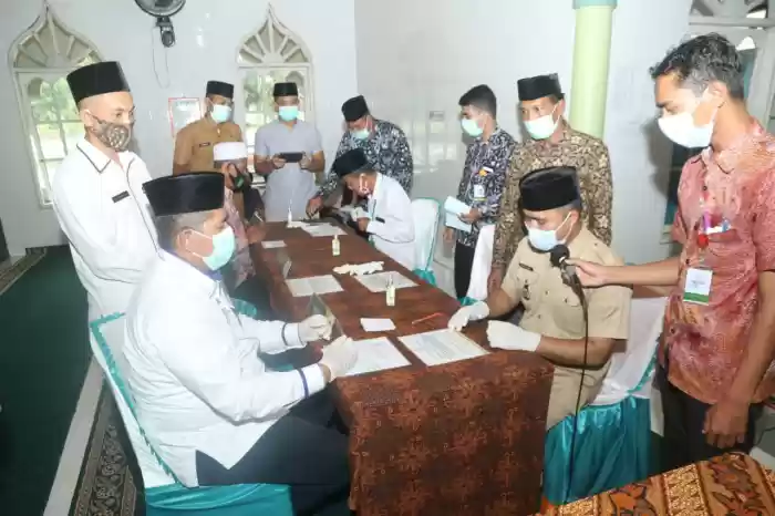 BALAIJAYA - Bupati Rokan Hilir, H Suyatno resmi melantik 18 Penghulu dari tiga kecamatan di Rokan Hilir. Rabu 7/9 pagi.