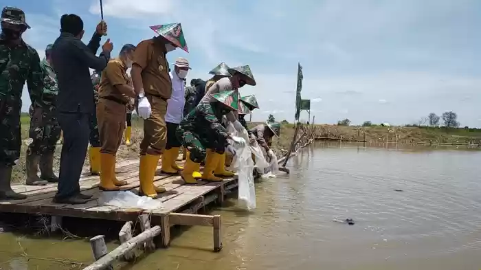 ROKAN HILIR- Ribuan bibit ikan secara langsung ditabur oleh Danrem 031 Wira Bima Brigjend TNI M. Syech Ismed, SE.M.Han bersama Gubernur Riau Syamsuar dan Kapolda Riau Irjen Pol Agung Setya Imam Effendi, S.H., S.I.K., M.Si, Selasa (30/3/2021).