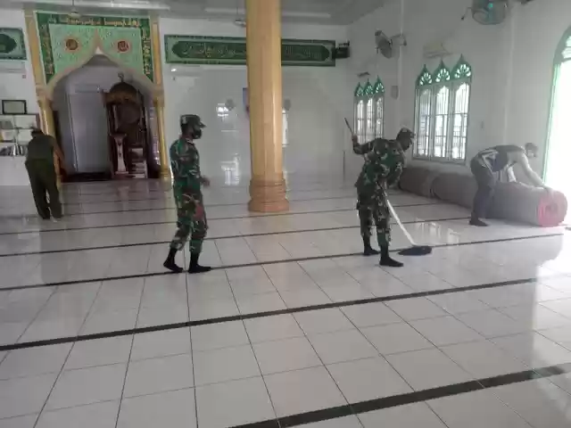 Sebelum Pelaksanaan Isra' Miraj, Babinsa Koramil 03/Bgs Goro Bersihkan Mesjid
