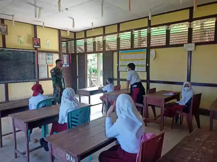 Satgas Pamtas RI-Malaysia Yonif 642/Kapuas melaksanakan kegiatan mengajar di SDN 06 Jagoi Babang, Kec. Jagoi Babang, Kab. Bengkayang, Kalbar.