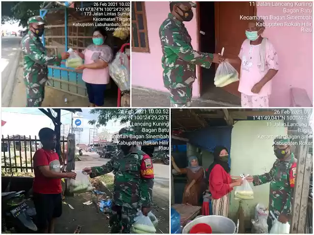 Sebagai bentuk kepedulian terhadap lingkungan sekitar, para Babinsa mewakili Danramil 03/Bgs Kodim 0321/Rohil bagikan Jagung.