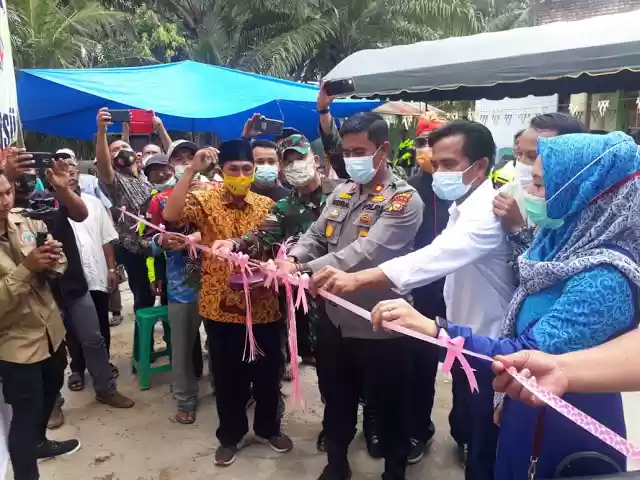Mewakili Kapolres Rokan Hilir AKBP Nurhadi Ismanto SH SIK, Kapolsek Bagan Sinembah Kompol Indra Lukman Prabowo SH SIK meresmikan Rumah Layak Huni (RLH)