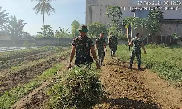 Koramil 03/Bgs Kembali Bersihkan Lahan Demplot Ketahanan Pangan