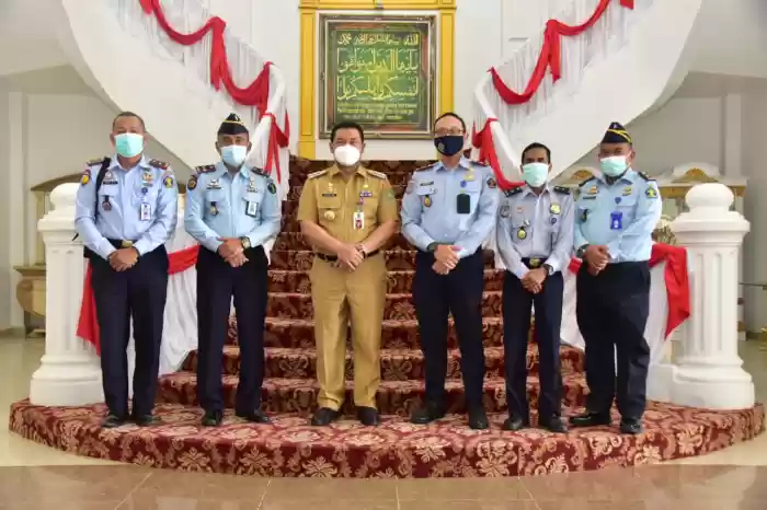 enjabat (Pj) Bupati Bengkalis H Syahrial Abdi menerima kunjungan Kepala Kantor Imigrasi (Kanim) Kelas II TPI Bengkalis Dimas Pramudito,