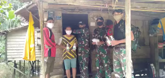 Satgas Pamtas Yonif 642 Distribusikan Hand Sanitizer, Masker dan Vitamin Secara Door To Door