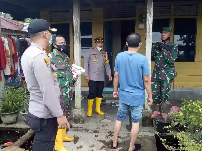 Polsek Bangko dan Kodim 0321 beserta tokoh Tionghoa laksanakan giat bakti sosial Pembagian Sembako dan nasi Kotak kepada warga yang terkena dampak banjir di wilkum Polsek Bangkok Polres Rohil (28/11/2020)