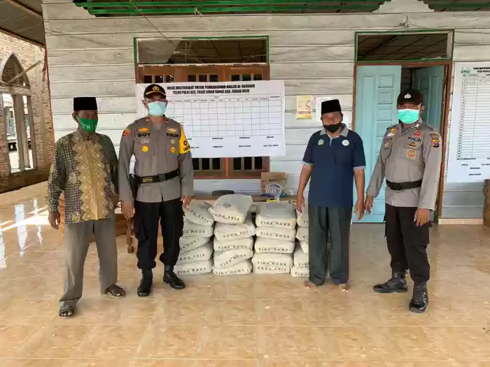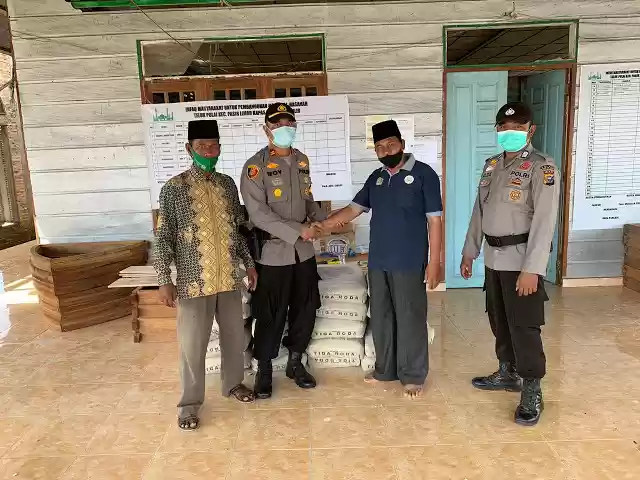 Sebagai bentuk kepedulian Polri dengan masyarakat, Polsek Panipahan Polres Rokan Hilir memberikan bantuan 40 sak semen untuk pembangunan Masjid Al Hasanah