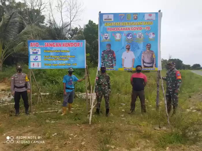 TNI-Polri terus bersinergi melakukan berbagai tindakan dalam upaya mencegah penyebaran virus Covid-19. Seperti yang dilakukan oleh dua orang personel Satgas Pamtas RI-Malaysia Yonif 642/Kapuas Pos Camar Bulan yang dipimpin Wadanpos Serda Khama