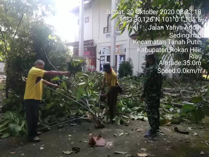 Musibah Angin Puting Beliung yang terjadi di RT 05/RW 02 Kelurahan Banjar XII Kecamatan Tanah Putih dan RT 04 RW 07 Kelurahan Sedinginan Kecamatan Tanah Putih merusak sejumlah rumah warga.