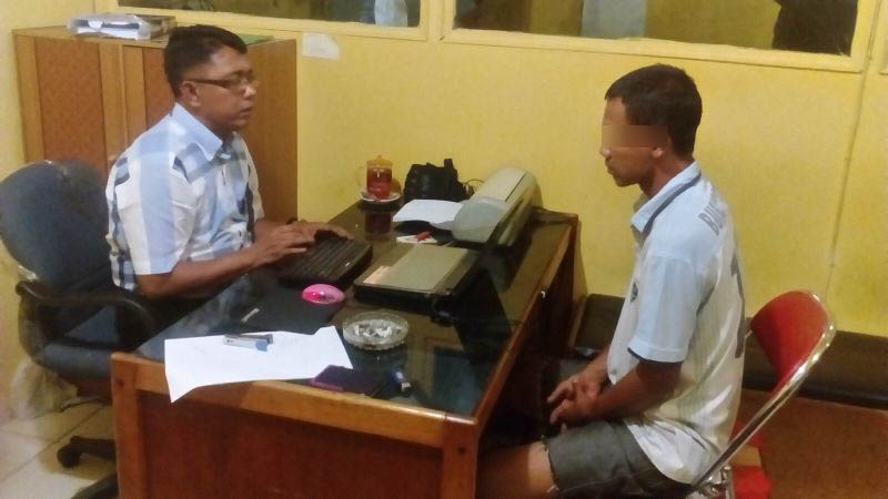 PEKANBARU - Asyik nongkrong di salah satu warung rokok di Jalan Tiram, Kelurahan Tangkerang Barat, Kecamatan Marpoyan Damai, seorang pelaku pen