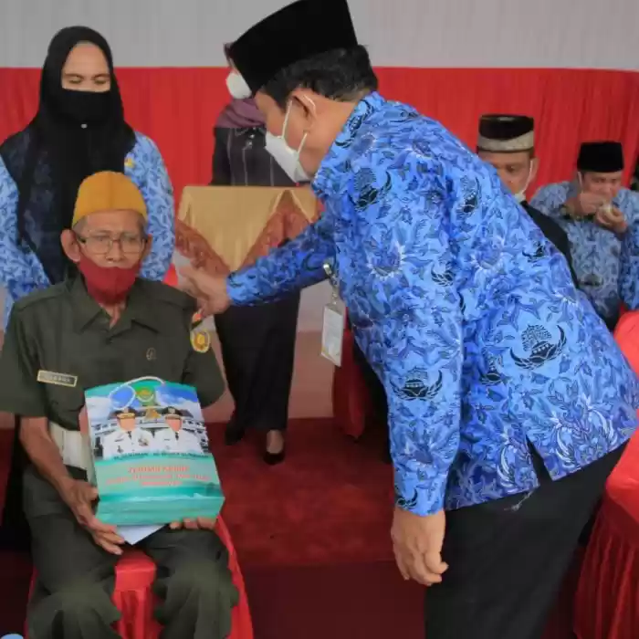 Usai pelaksanaan Upacara Hari Pahlawan Bupati Sukiman juga tidak lupa memberikan tanda hati kepada Djabal yang merupakan Veteran di Rokan Hulu. (Advetorial Diskominfo Rohul)