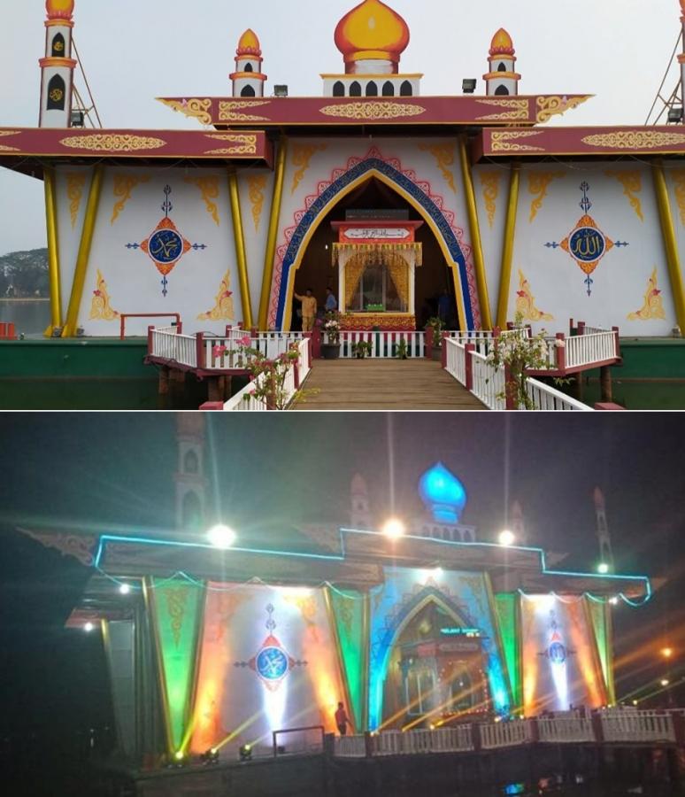 Keterangan Foto: Tampak indah Astaqa terapung MTQ 2019 ke 49 yang dipusatkan di lokasi wisata Danau Raja Rengat.