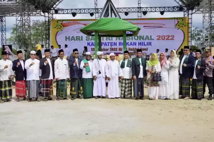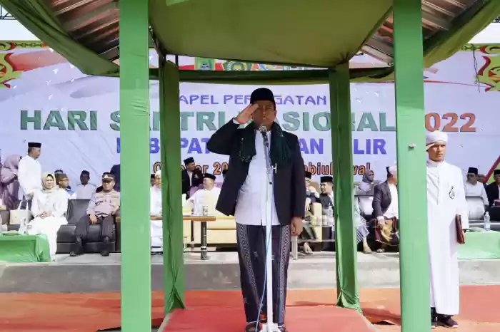 UJUNGTANJUNG- Wakil Bupati Rohil H Sulaiman SS MH menghadiri Upacara Peringatan Hari santri Nasional di Pondok Pesantren (Ponpes) Bidayatul Hidayah (BHD) yang berada di Simpang Benar, Kepenghuluan Ujung Tanjung, Kecamatan Tanah Putih, Sabtu (22/10/2022).