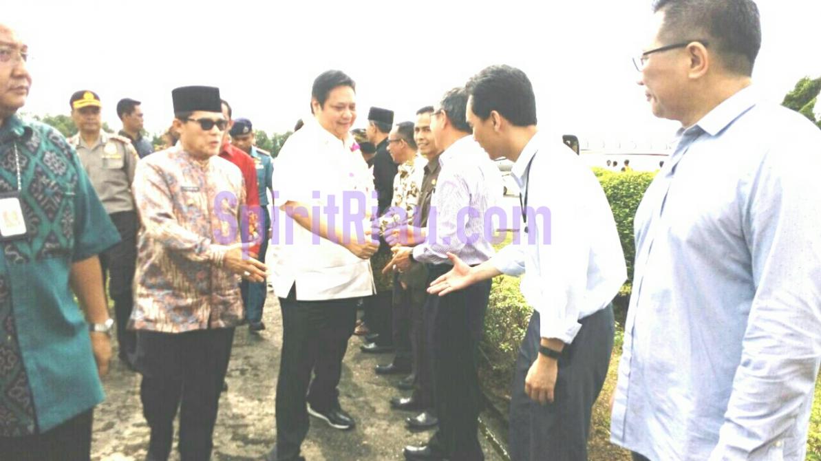 DUMAI - Menteri Perindustrian Republik Indonesia, Airlangga Hartarto tiba di Kota Dumai disambut oleh Wali Kota Dumai, H. Zulkifli As, pada Kamis (3/11) di Bandara Pinang Kampai. Menperin datang