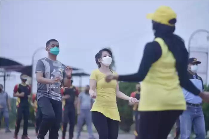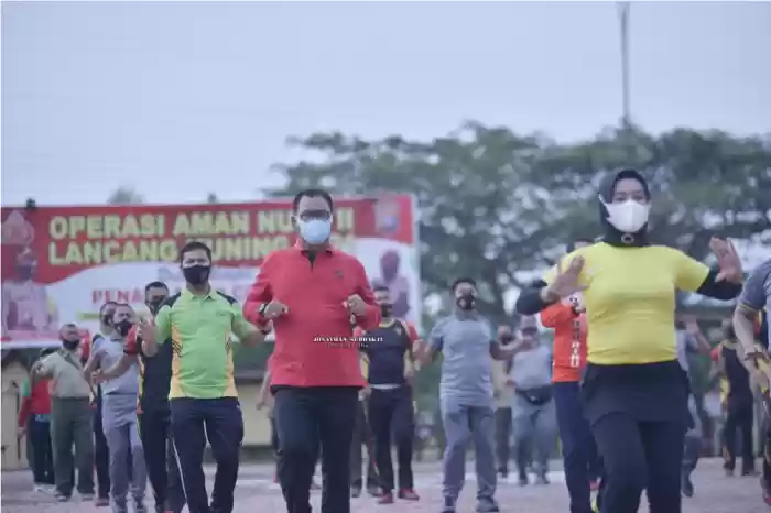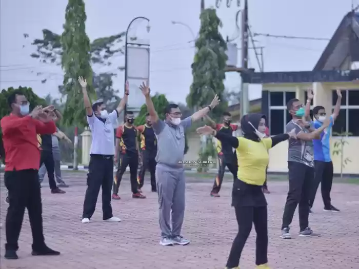 Jaga Sinergitas, Anggota TNI-Polri dan Forkopimda Rohil Senam Bersama