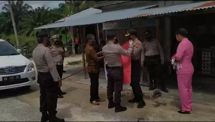 Polisi di Rohil Jahit Sendiri Bendera Merah Putih Kemudian di Bagi Untuk Warga