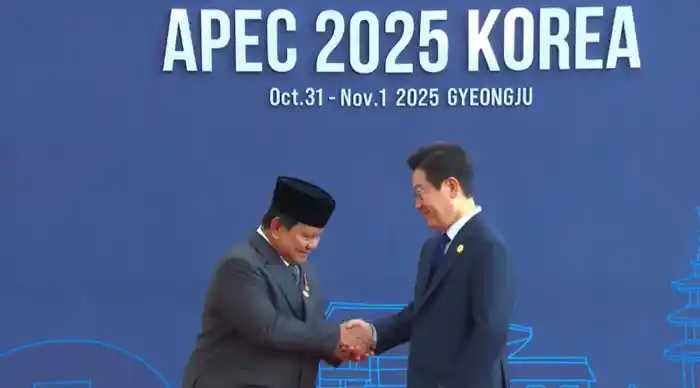 GYEONGJU - Presiden Prabowo Subianto disambut hangat Presiden Korea Selatan (Korsel) Lee Jae-myung saat menghadiri Konferensi Tingkat Tinggi (KTT) APEC 2025, di Gyeongju, Korea Selatan, Jumat (3