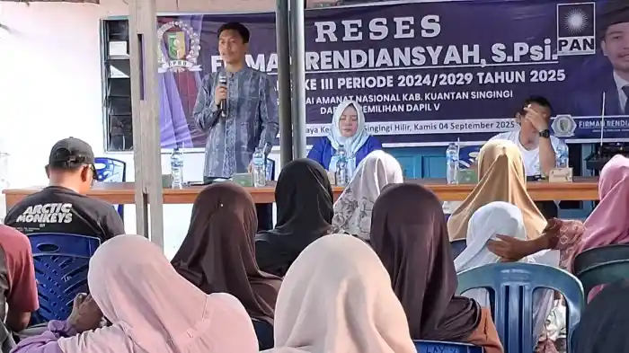 Ratusan masyarakat menghadiri reses Firman Rendiansyah, S.Psi ,Anggota DPRD Fraksi Partai Amanat Nasional (PAN) Kabupaten Kuantan Singingi (Kuansing) yang dilaksanakan di Desa Sumber Jaya, Kec, Singingi Hilir, Kamis (4/9/2025).