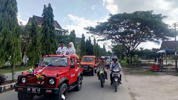 Diarak Keliling Tembilahan, Pesta Pernikahan Dua Sejoli di Inhil Ini Berlangsung Meriah
