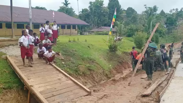 Sementara itu, Maria Raweng selaku Kepala sekolah SD YPPK Kampung Kakuna menyampaikan bahwa Okta dan teman-temanya setiap hari selalu menyaksikan pekerjaan jalan didepan sekolahan. “Mereka (anak-anak) mempunyai harapan besar pada pekerjaan yang dilakukan satgas supaya cepat rampung,” ucapnya.