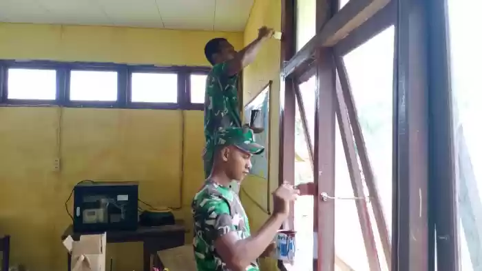 Meskipun pengecoran jalan sepanjang 460 meter dan pembangunan 10 unit jamban pada program TMMD ke-109 Kodim 1711/Boven Digoel segera usai, para anggota Satgas tetap menyempatkan diri memperbaiki Sekolah Dasar YPPK dan Balai Kampung Kakuna.