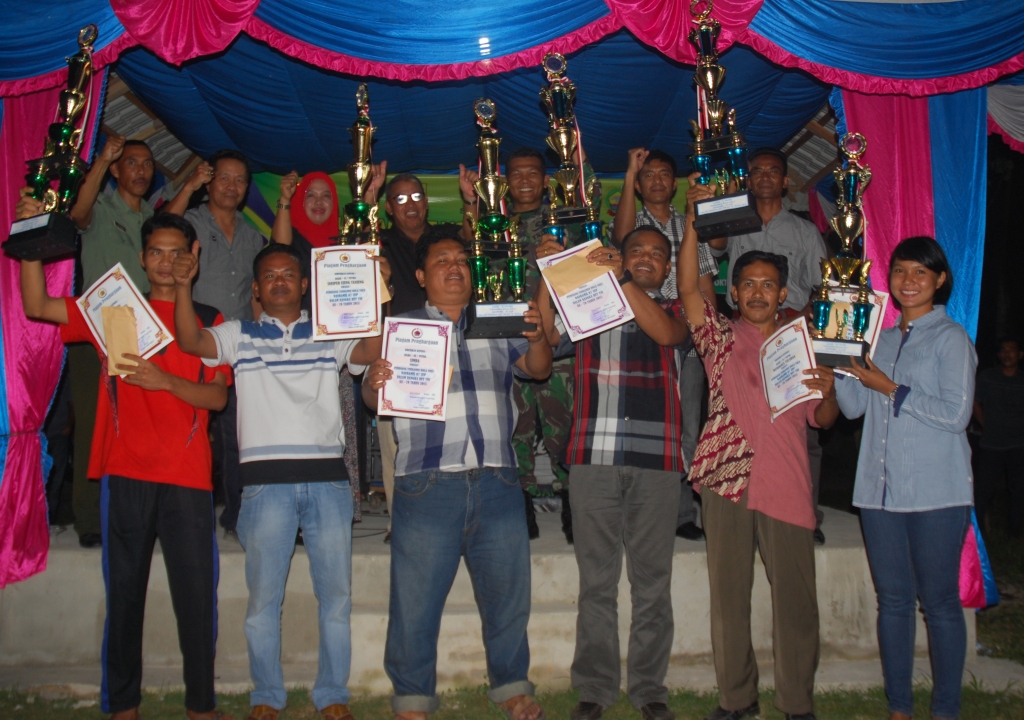 UJUNG TANJUNG-Koramil 07/Tanah Putih Rokan Hilir menggelar syukuran HUT TNI Ke-70, sekalian bagi-bagi hadiah pemenang turnamen Volli Ball Danramil Cup, Senin (12/10/2015) malam di Aula Mak