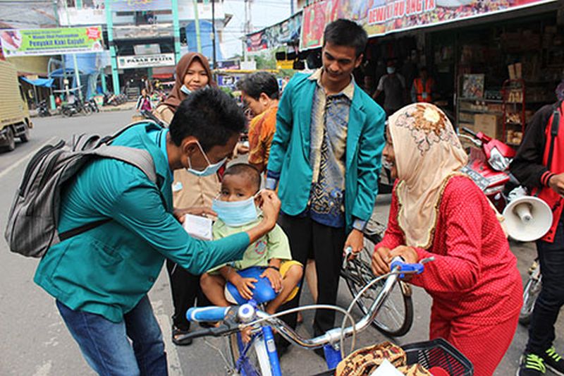 Dema, Sema dan Himaporodi STAI Ar-Ridha Bagansiapiapi Bagikan 2.000 Masker, Melawan Asap