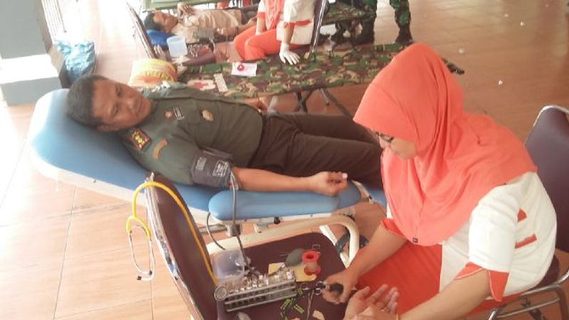 Dalam Rangka HUT TNI Ke 70 Anggota Koramil 06/Cerenti Donor Darah