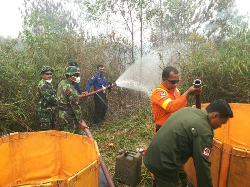 PEKANBARU - Danramil 06/Sukjadi bersama BNPB atasi kebakaran lahan dan