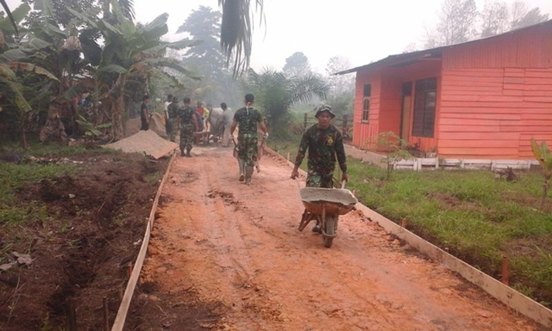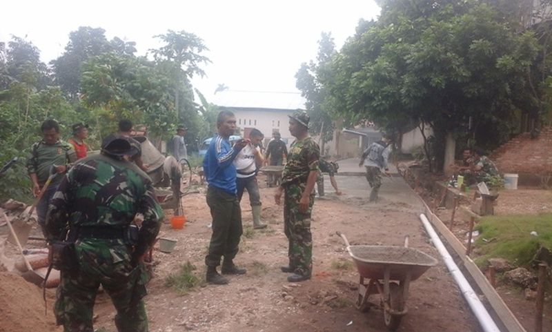 berperan serta bersama anggota TNI dalam program TNI Manunggal Membangun