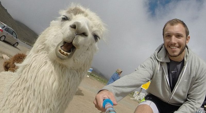 FOTO selfie lucu bareng hewan sedang tren di traveller. Kini, seorang traveller berhasil berfoto selfie bareng unta khas Amerika Selatan.