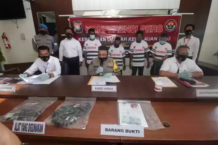 Polda Kepri Amankan Empat Tersangka Tindak Pidana Pengancaman Dan Masuk Perkarangan Tanpa Izin