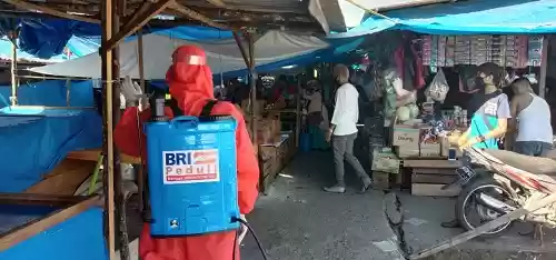 Trantib Disperindag Inhil rutin melakukan penyemprotan desinfektan di semua pasar tradisional di ibukota kabupaten itu. Tak lupa, warga juga terus diimbau untuk mematuhi protokol kesehatan Covid-19.