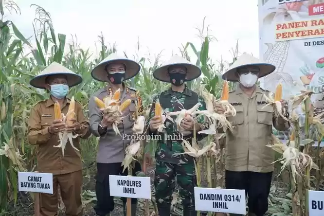Pemerintah Kabupaten Indragiri Hilir dalam rangka Peringatan Hari Pangan Se-dunia TH 2020, Bupati Inhil HM.Wardan melakukan panen Raya Jangung
