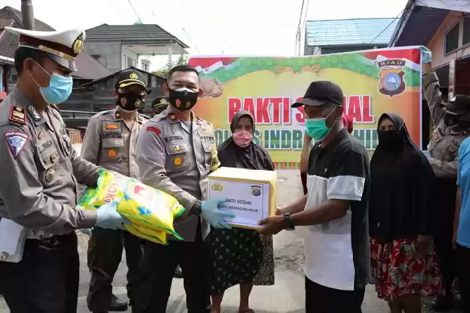 Polres Inhil Bantu Sembako Warga Terdampak Covid-19 di Lorong Kampong Jawa
